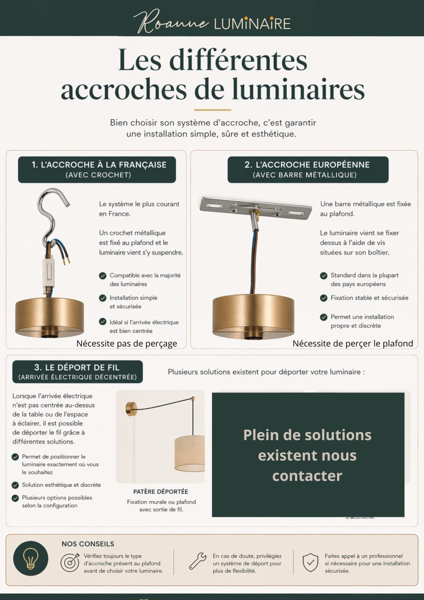 👉 Un mauvais système de fixation peut endommager votre plafond ou votre luminaire.